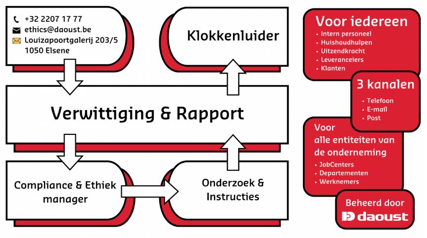 Dit schema dient als leidraad en biedt de mogelijkheid elke inbreuk van wettelijke en reglementaire normen op een vertrouwelijke manier te melden.