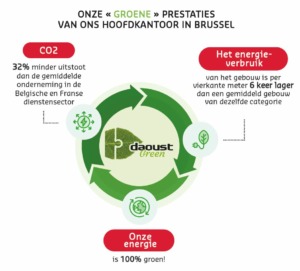 - In 2022 behaalde Daoust het CO2 Neutral label voor haar hoofdkantoor en compenseerde alle uitstoot van haar hoofdkantoor door een project in Rwanda te ondersteunen.
